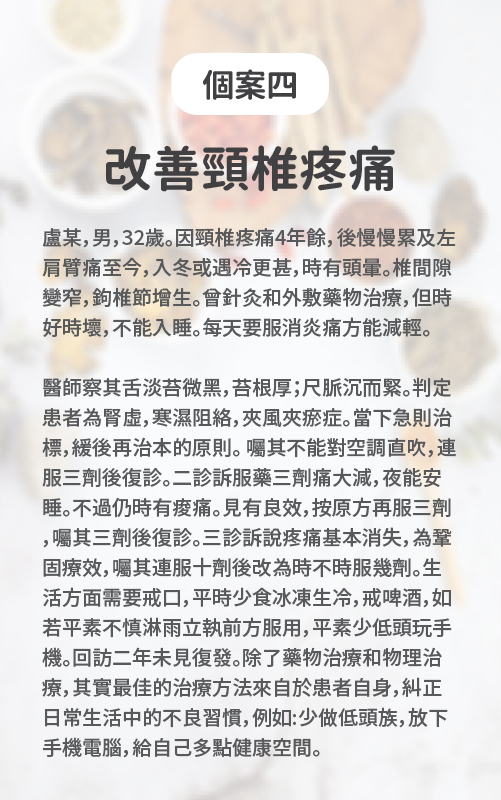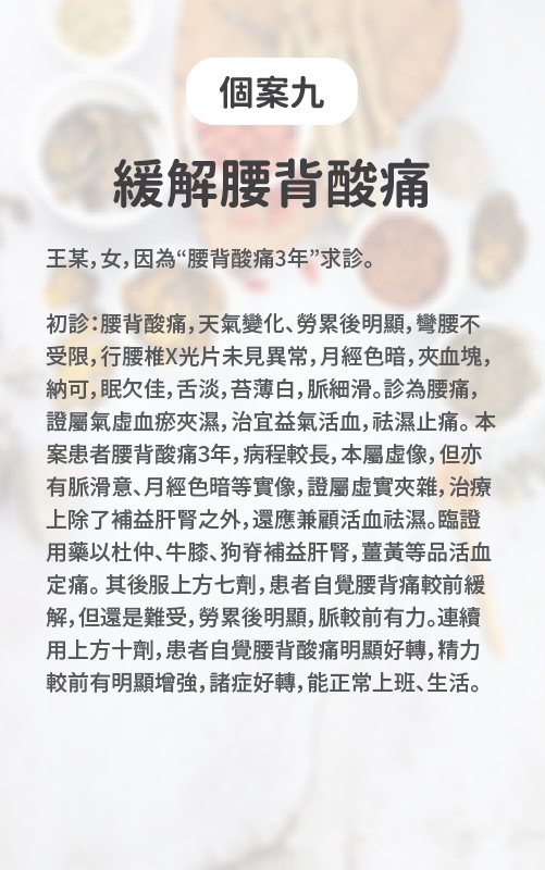 領健中醫診所多年來有數不勝數的成功案例,幫助客人解決各種身體難題,以下是我們的若干典型案例。